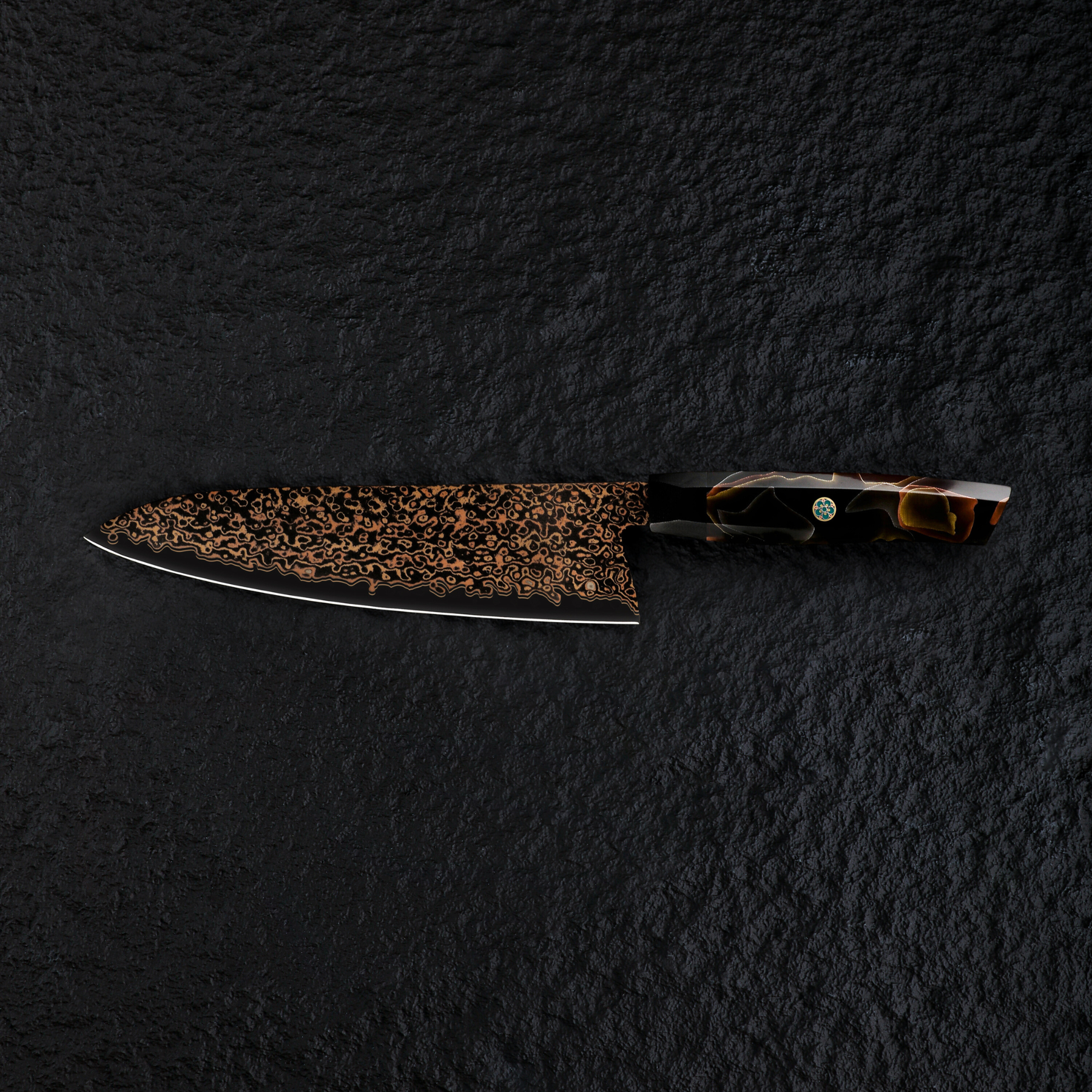 36 layers of black Copper Damascus steel surrounding VG-10 steel core