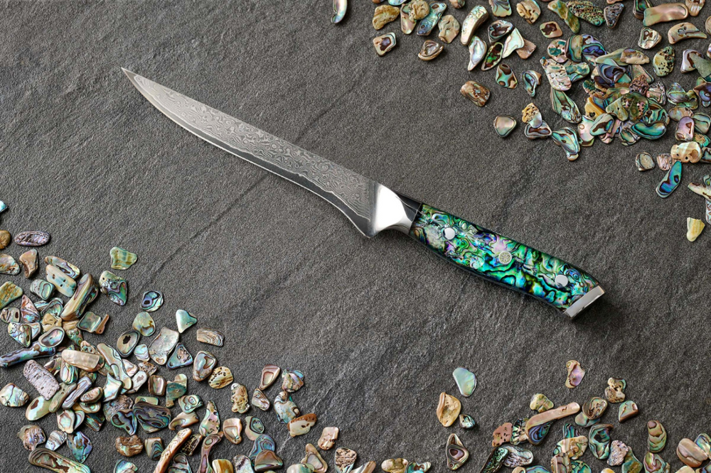 The Daimyo series is a testament to luxurious craftsmanship, from the hand-forged Damascus blades to the acrylic handles enhanced with a layer of abalone shells, designed for chefs who aspire to conquer culinary challenges with flair.