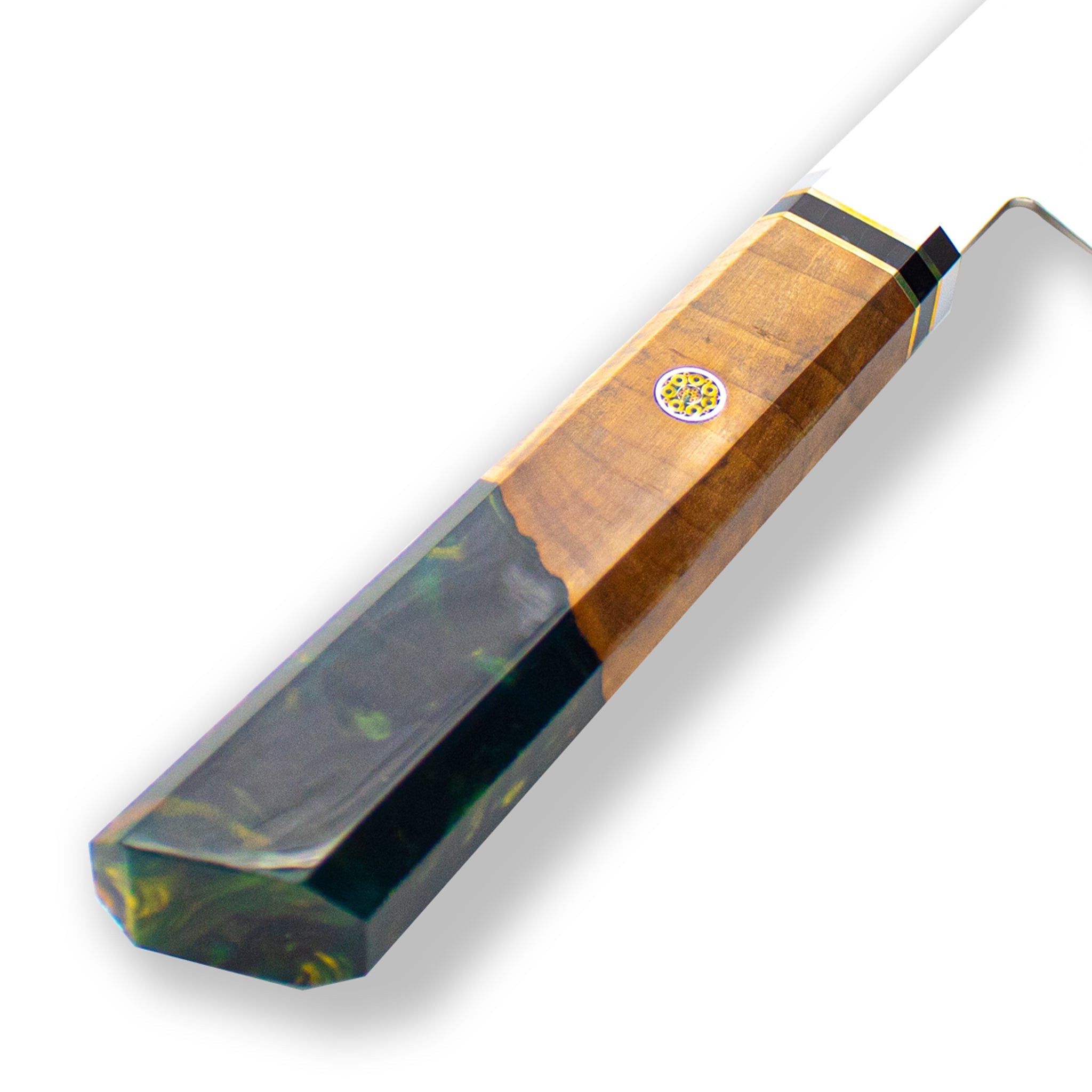 69 layers of Damascus steel (VG-10 steel core + 68 layers of Damascus steel)